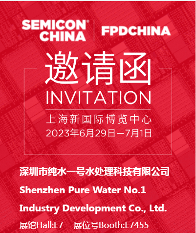 誠邀您參加深圳市純水一號水處理科技有限公司的展覽活動,共同探索水處理領域的最新發(fā)展和創(chuàng)新。作為水處理行業(yè)的領跑者,我們將在SEMICON China 2023上海新國際博覽中心展示最新的科技創(chuàng)新、高效節(jié)能的水處理設備和解決方案。